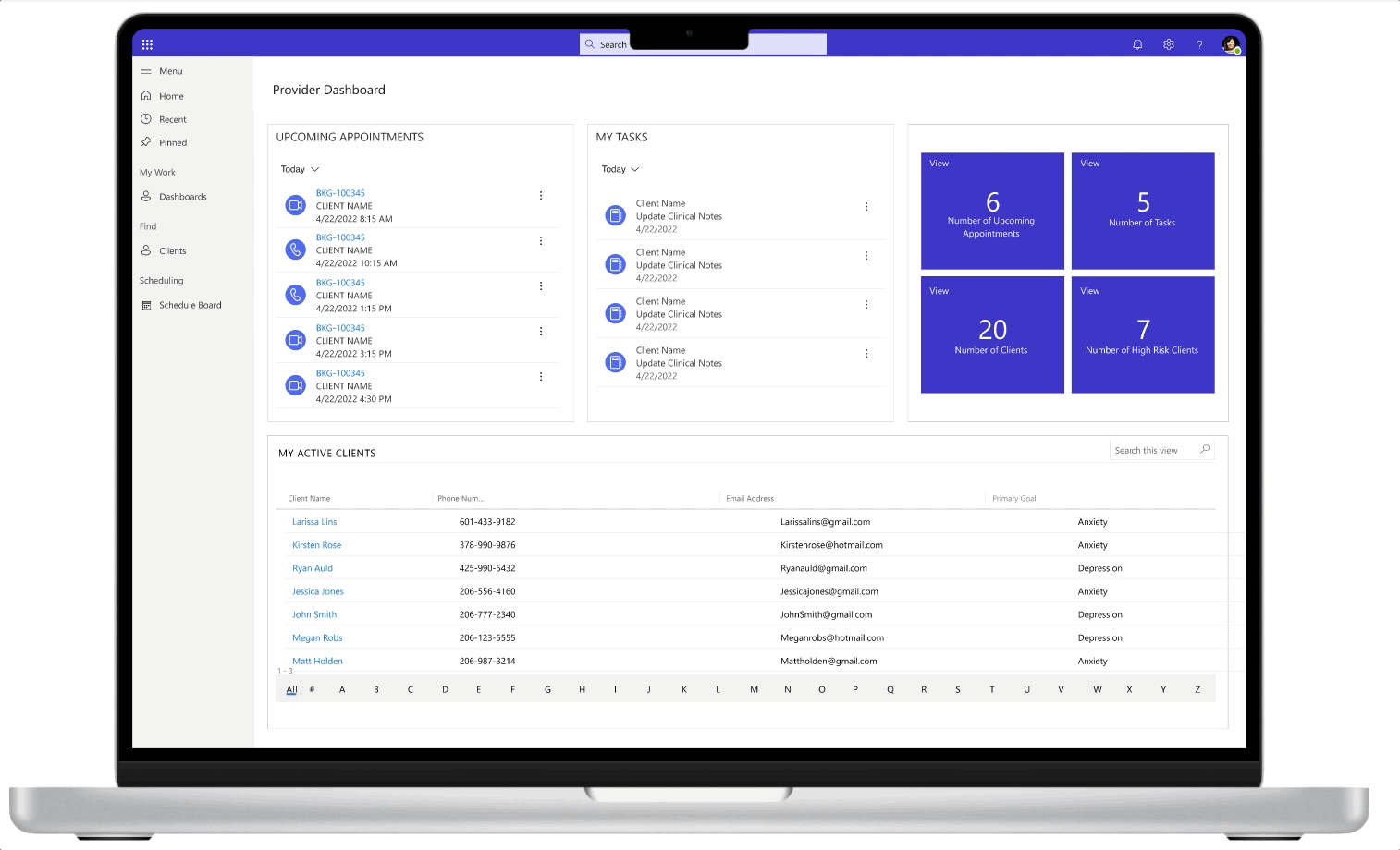 The counselor dashboard addresses the needs for a centralized workflow designed specifically for counselors, enabling them to efficiently manage daily tasks and patient interactions.